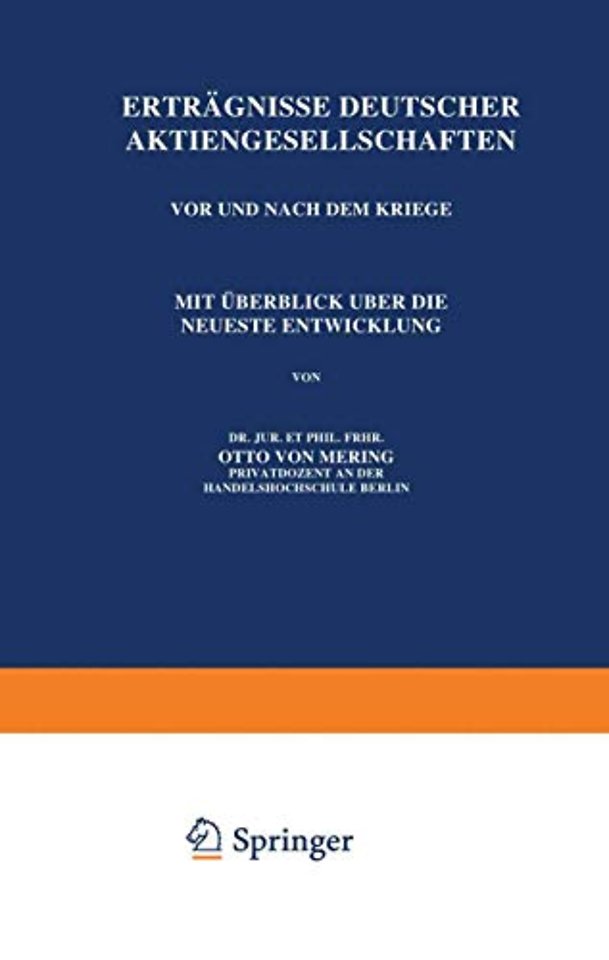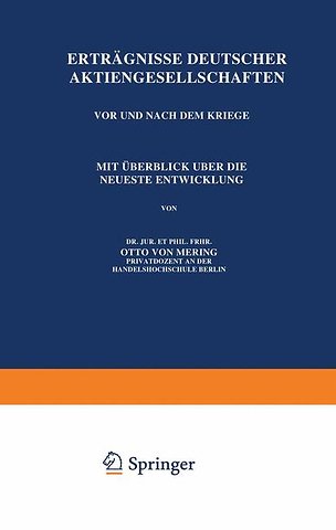 Erträgnisse Deutscher Aktiengesellschaften Vor und Nach dem Kriege