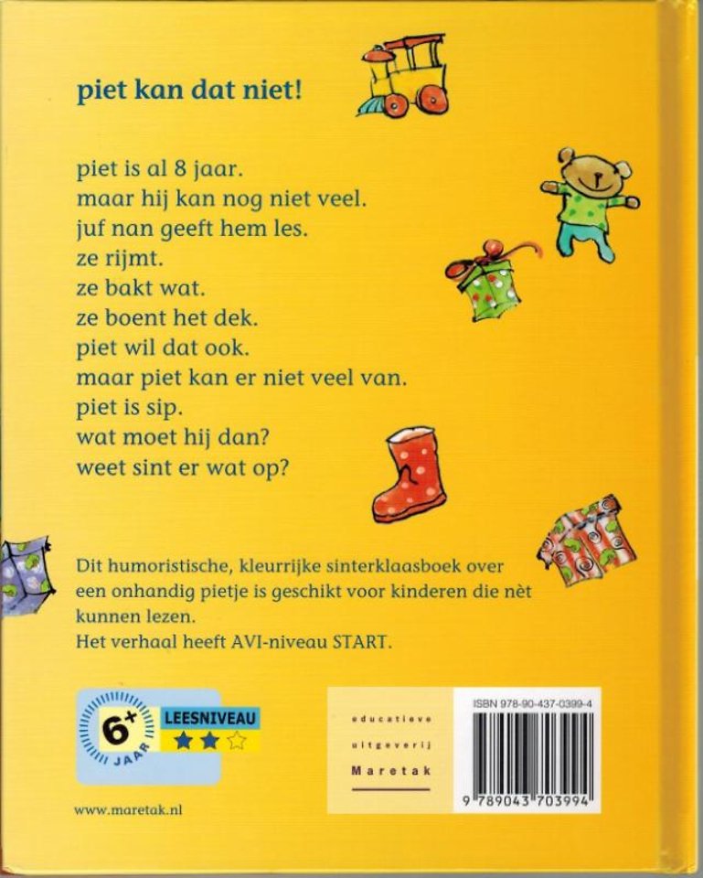 Dit humoristische, kleurrijke sinterklaasboek over een onhandig pietje is gemaakt voor kinderen die nèt kunnen lezen.